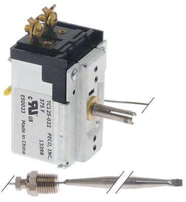 Termostat T.maks. 191°C 1-polet 1NO Føler ø 8mm Føler L 124mm Kapillærrør 590mm Pakdåse