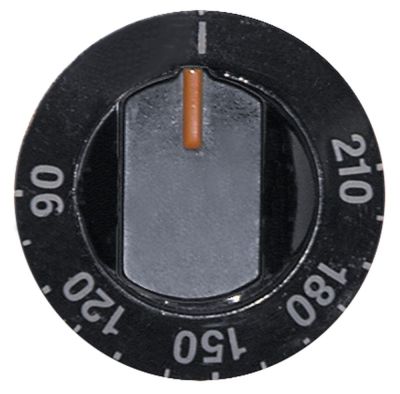 knob thermostat t.max. 210°C ø 64mmshaft ø 6x4.6mm shaft flat lower black